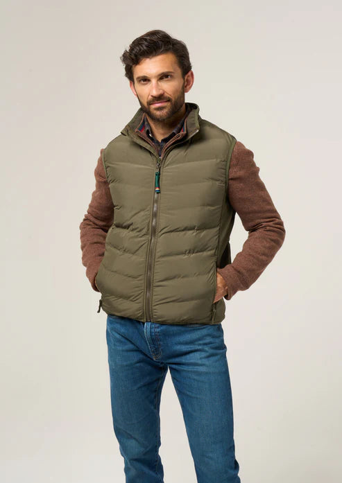 The Calsall Hybrid Gilet in olive is a perfect combination of style and comfort. Made with 100% recycled polyester and ultra-lightweight plant-based insulation, this regular fit gilet is designed to keep you warm and protected. It's a great choice for all-season wear.